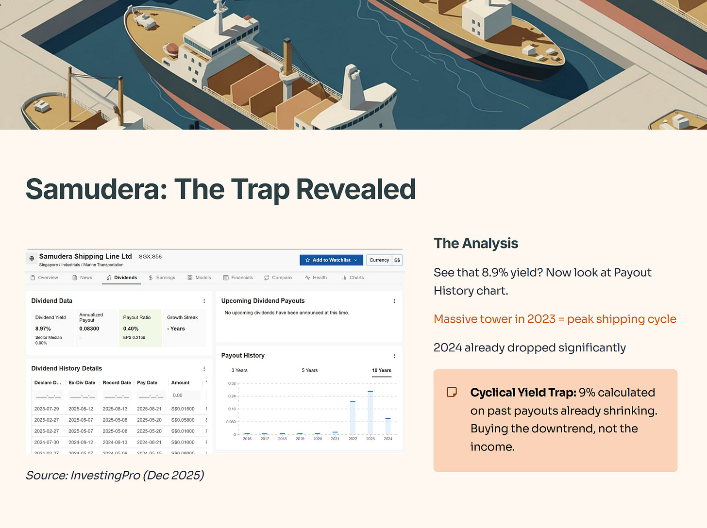 The Trap: Samudera’s 9% looks juicy, but that figure is likely based on trailing 12-month payouts during a shipping boom. Is it safe? Let’s look at the Financial Health Score.
