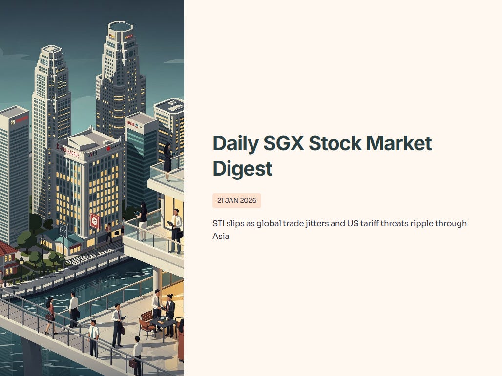 Reminder: The S$9 YouTube membership bundles EVERYTHING (Podcast Videos + Substack Research), so that is your ‘Best Buy’ if you are on the fence. Now, looking at the market today... it’s a bit of a “wake-up call” morning. After the STI hit record highs just last week, we are seeing a sea of red as Asia digests a nasty Wall Street sell-off. Trump’s latest tariff threats are keeping everyone on edge.