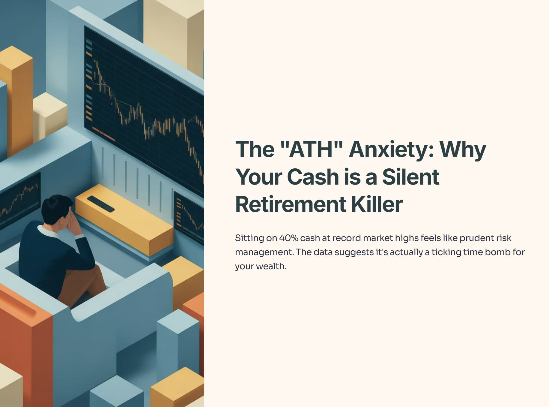 While holding 40% cash at record highs feels like prudent risk management, the data shows it’s actually a ticking time bomb for your wealth. Here is the 60/40 deployment strategy I’m using.