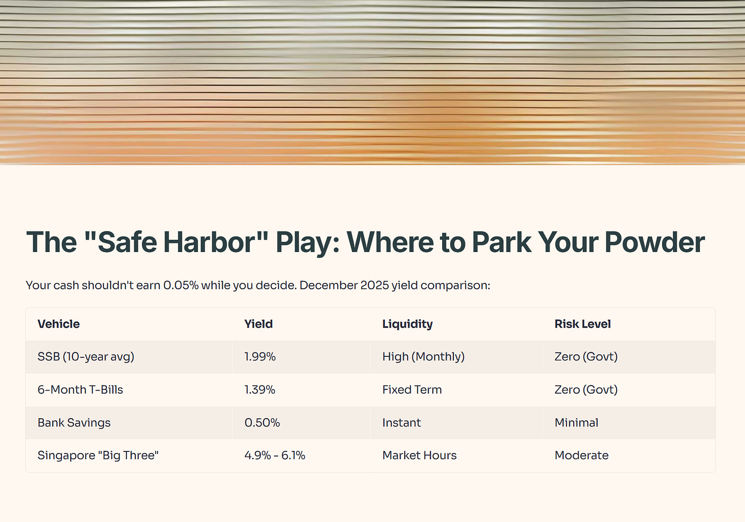 While you decide on your deployment speed, your cash shouldn’t be sitting in a standard savings account earning 0.05%. In December 2025, the Singaporean investor has unique vehicles to bridge the gap.