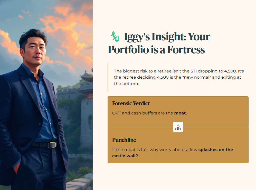 Your portfolio is a Fortress, but only if you stop opening the gate for the invaders. The biggest risk to a retiree isn’t the STI dropping to 4,500; it’s the retiree deciding that 4,500 is the “new normal” and exiting at the bottom. We have seen this movie in 2008, 2020, and now 2026. The plot never changes, only the actors.