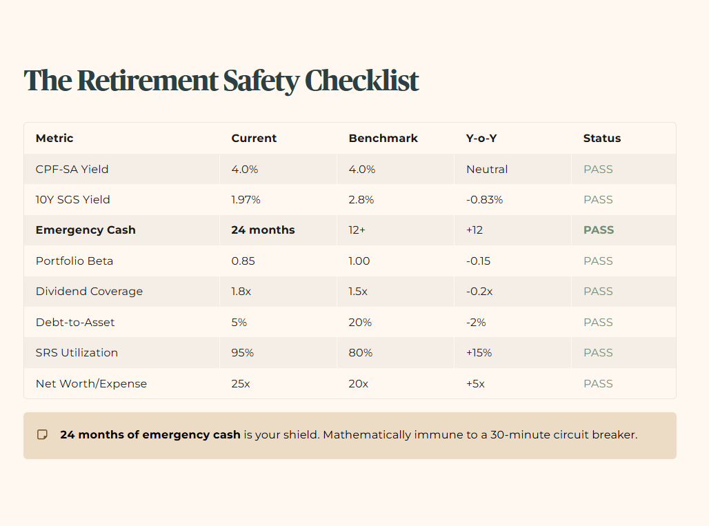 Forensic Verdict: Your CPF and cash buffers are the moat.