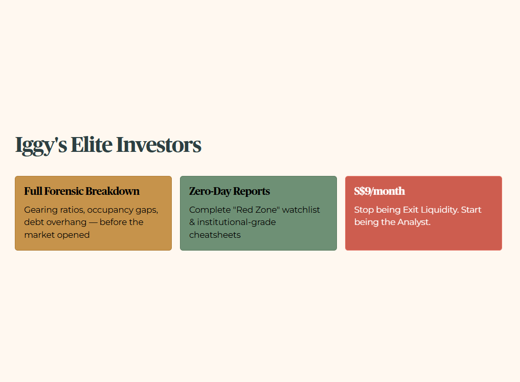 Iggy’s Elite Investors didn’t chase the headline yield. They had the full forensic breakdown — the gearing ratios, the occupancy gaps, the debt overhang — before the market opened and before the price moved. Zero-day reports, the complete “Red Zone” watchlist, and institutional-grade cheatsheets that flag the landmines disguised as opportunities.