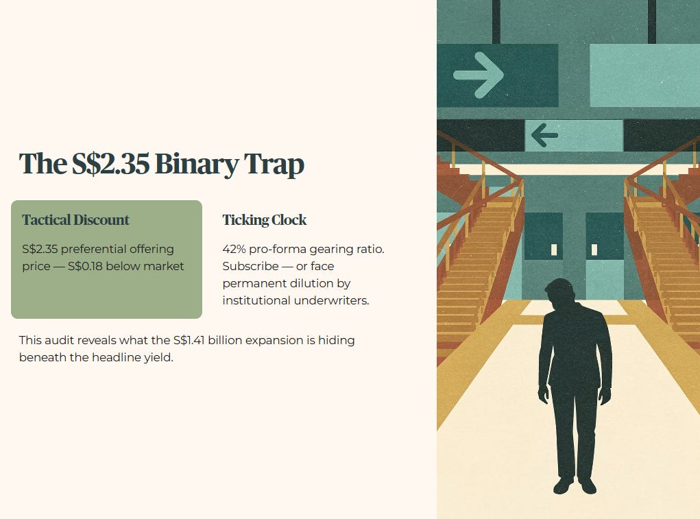 The S$2.35 preferential offering price and the 42% pro-forma gearing ratio. One of these numbers is a tactical discount. The other is a ticking clock on the balance sheet.