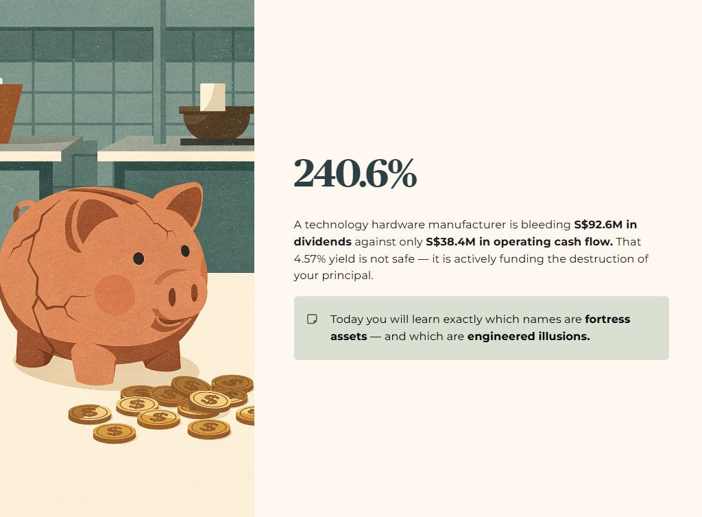 If you are deploying your CPF SA capital into this counter assuming the 4.57% yield is structurally safe, you are actively funding the destruction of your own principal. Today, you will walk away knowing exactly which April and May dividend names possess the fortress balance sheets to protect your retirement, and which ones are engineered illusions.