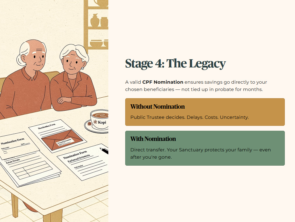 Do not let the Public Trustee decide how your money is distributed. A valid CPF Nomination ensures your CPF savings go directly to your chosen beneficiaries instead of being tied up in probate and administrative processes for months.