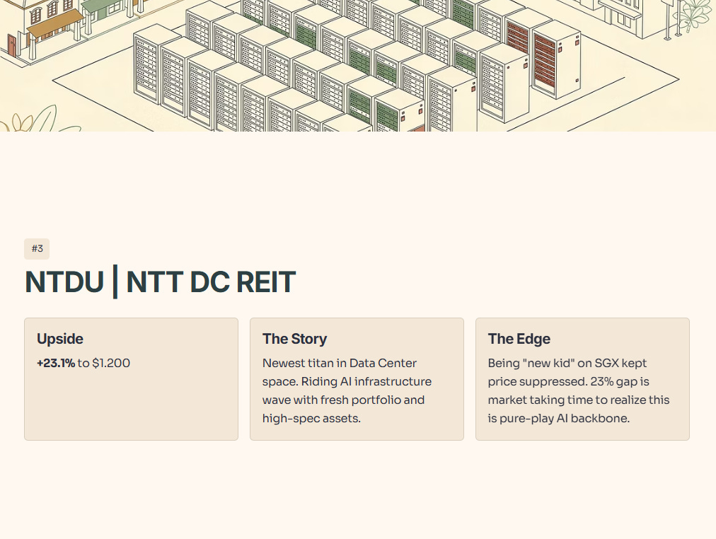 🦎 Iggy’s Insight: Being the “new kid” on the SGX block has kept the price suppressed. The 23% gap is simply the market taking its time to realize this is a pure-play AI backbone.