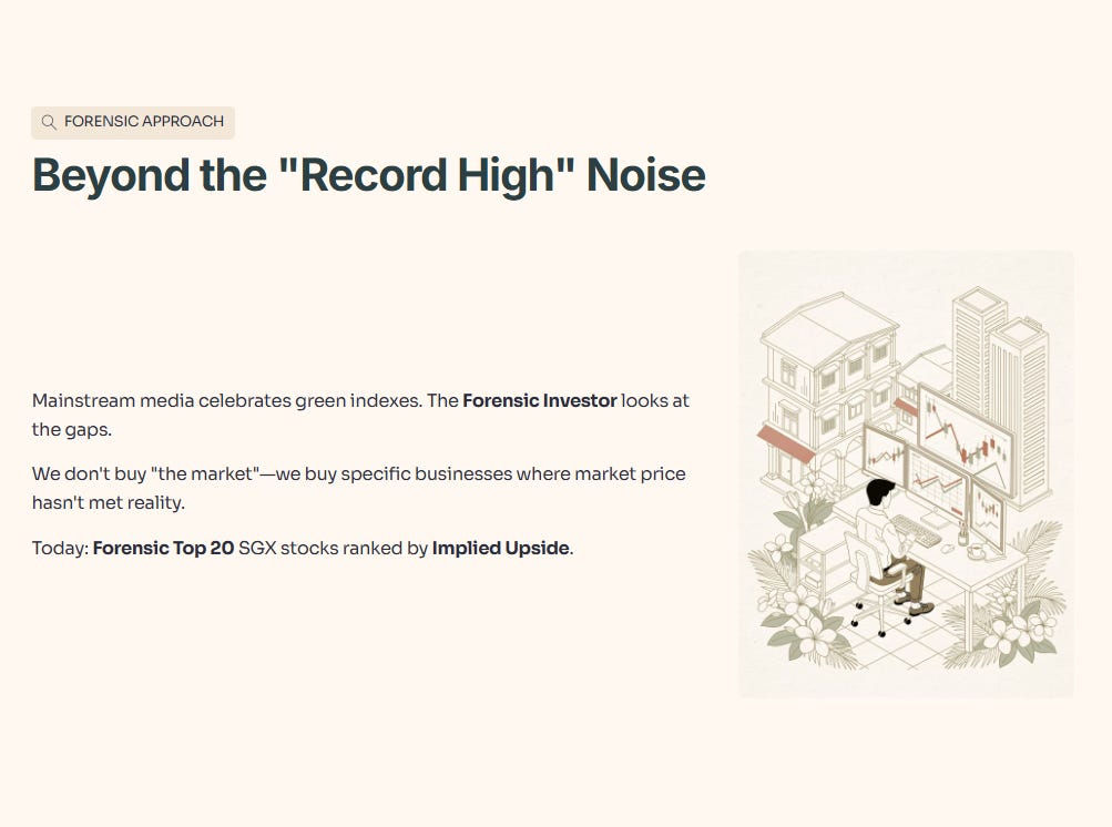📂 The Forensic Vault: Access the full forensic reports and portfolio walkthroughs where I strip away the corporate hype to reveal the hard math behind every Singapore blue chip.