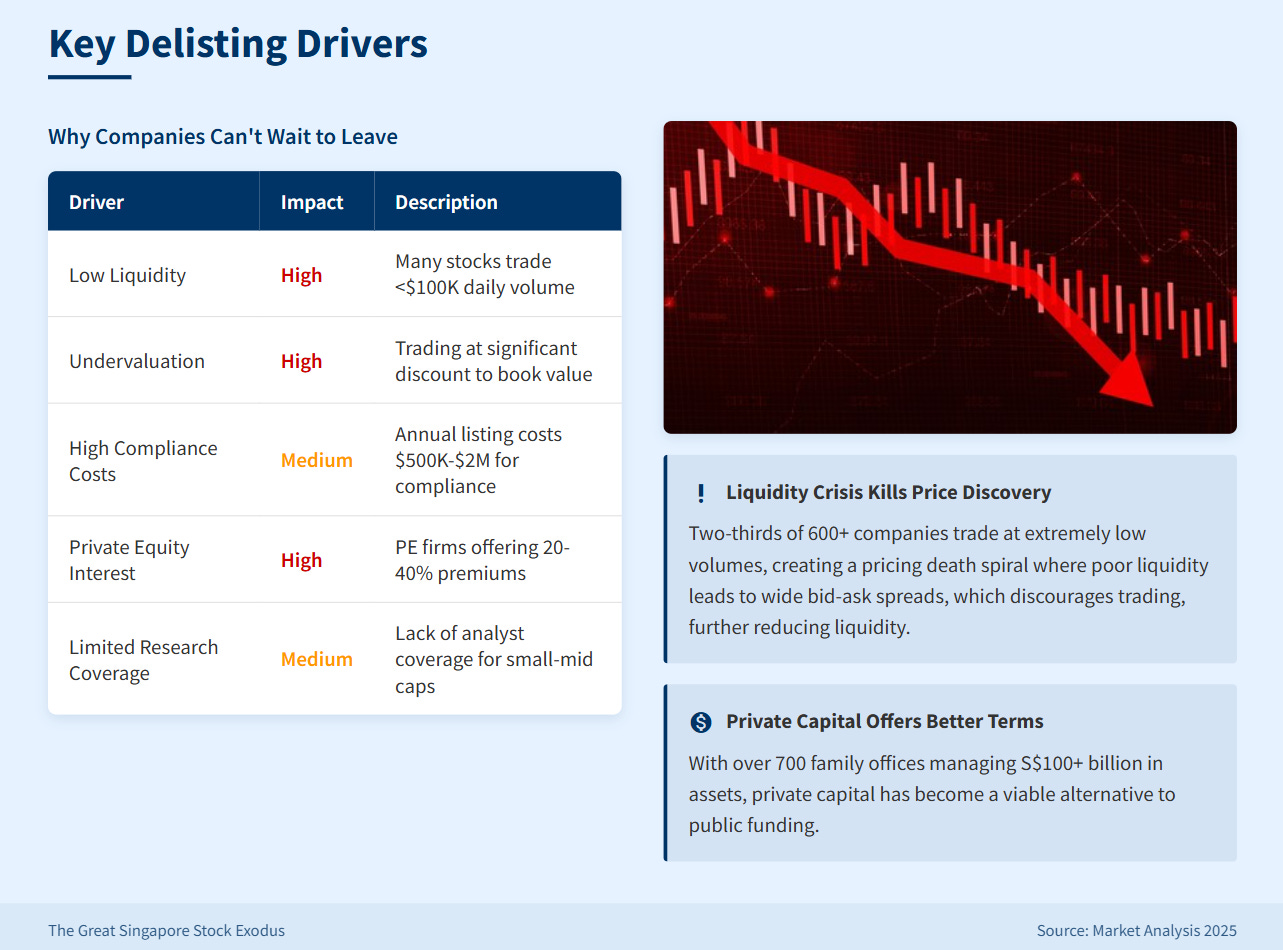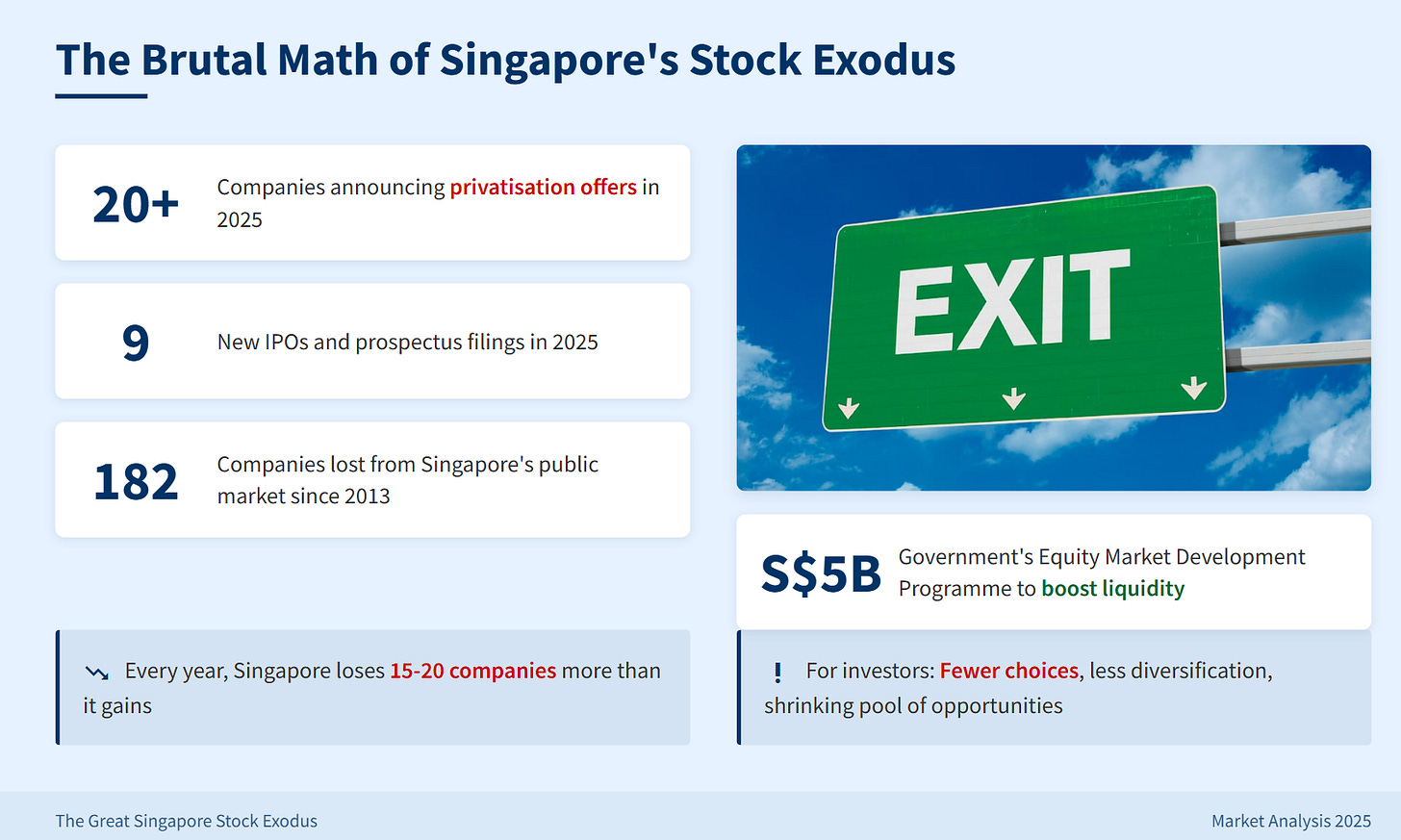 The delisting trend creates both risks and opportunities for Singapore investors. Understanding the implications is crucial for portfolio positioning.