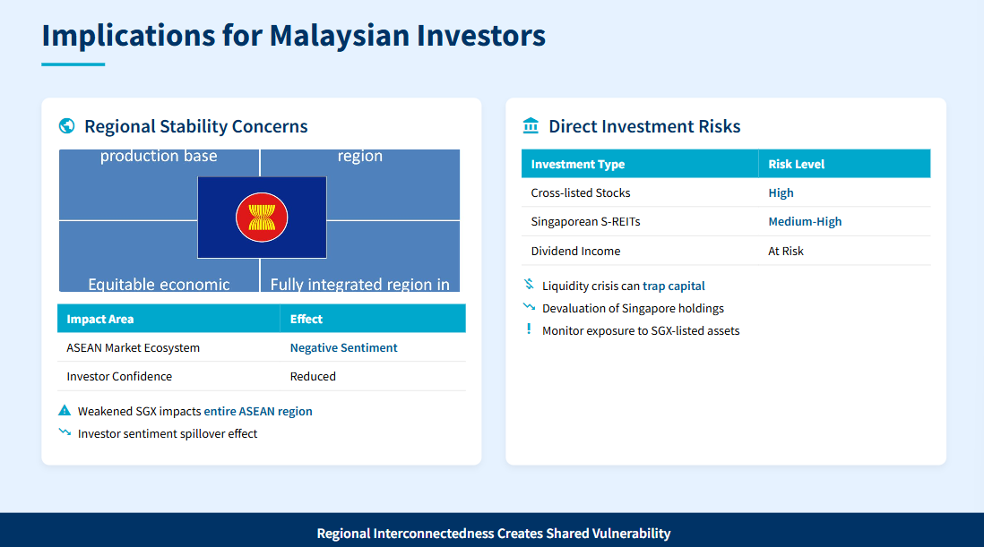 For one, regional stability. A weakened SGX impacts the entire ASEAN capital market ecosystem, affecting investor sentiment. More directly, many Malaysian investors hold cross-listed stocks or invest in Singaporean S-REITs for dividend income. A liquidity crisis in Singapore can trap their capital or devalue those specific holdings.
