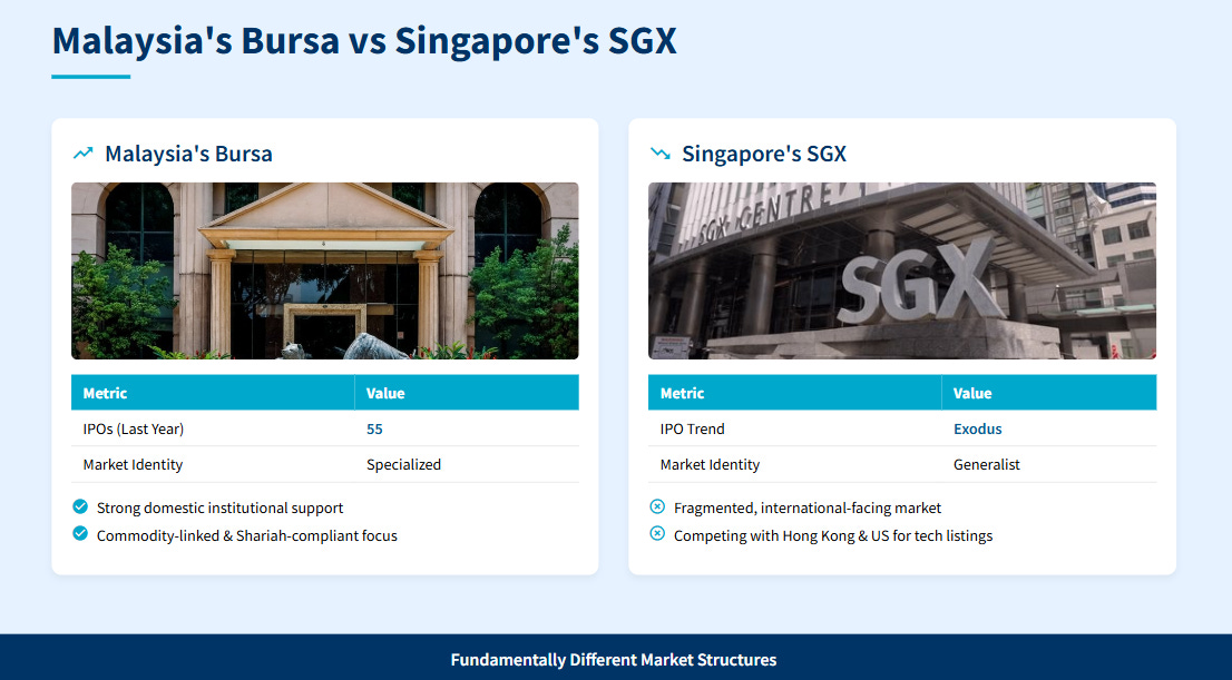 The contrast with Singapore’s northern neighbor couldn’t be starker. As the SGX struggles with an exodus, Malaysia’s Bursa recorded 55 IPOs last year. This isn’t an accident; it’s the result of a fundamentally different market structure that SGX cannot easily replicate.