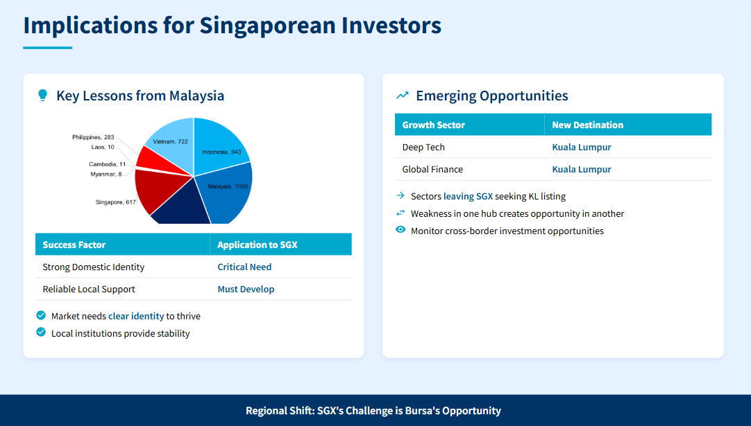 For Singaporean investors, the lesson from Malaysia is that a market needs a strong domestic identity and reliable local support to thrive. For Malaysian investors, the takeaway is twofold: appreciate the structural advantages of your home market, but also recognize that the “growth” sectors (like deep tech or global finance) that SGX is failing to retain are now increasingly looking to KL as a viable alternative. The weakness in one hub creates an opportunity in the other.