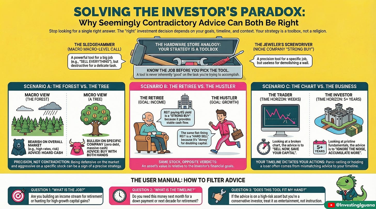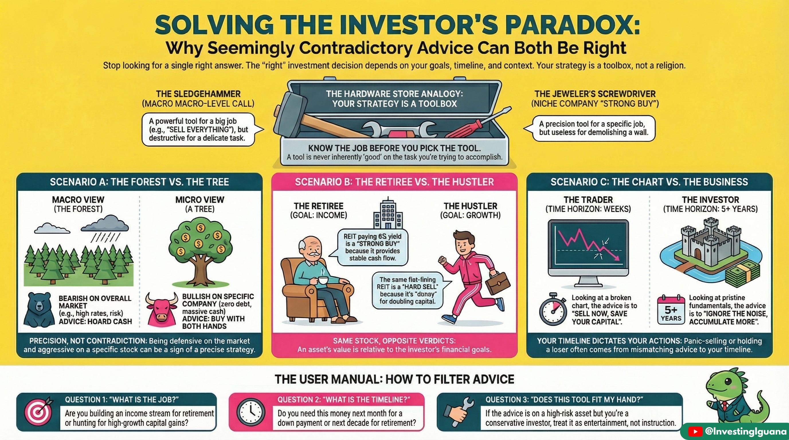 The Standard: I can be bearish on the “Market” (the forest) but bullish on a specific “Stock” (a tree). If you are a passive index investor, listen to the “Hoard Cash” advice. If you are a value hunter, listen to the “Buy” signal. Nuance is not a contradiction; it’s precision.