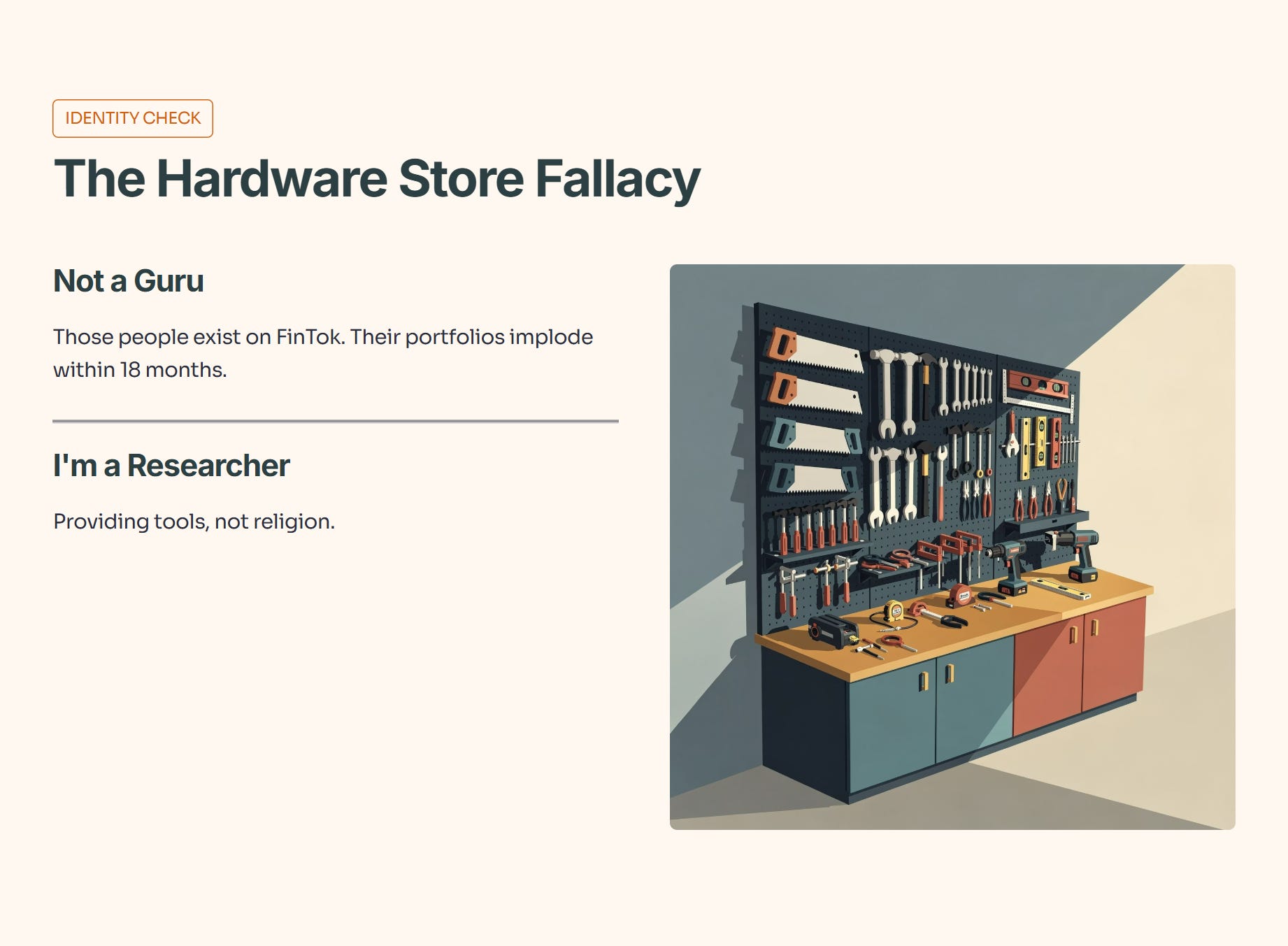 If you are looking for a Guru who stands on a mountain and shouts “BUY EVERYTHING” or “SELL EVERYTHING,” you are in the wrong place. Those people exist on TikTok (”FinTok”), and their portfolios usually implode within 18 months.