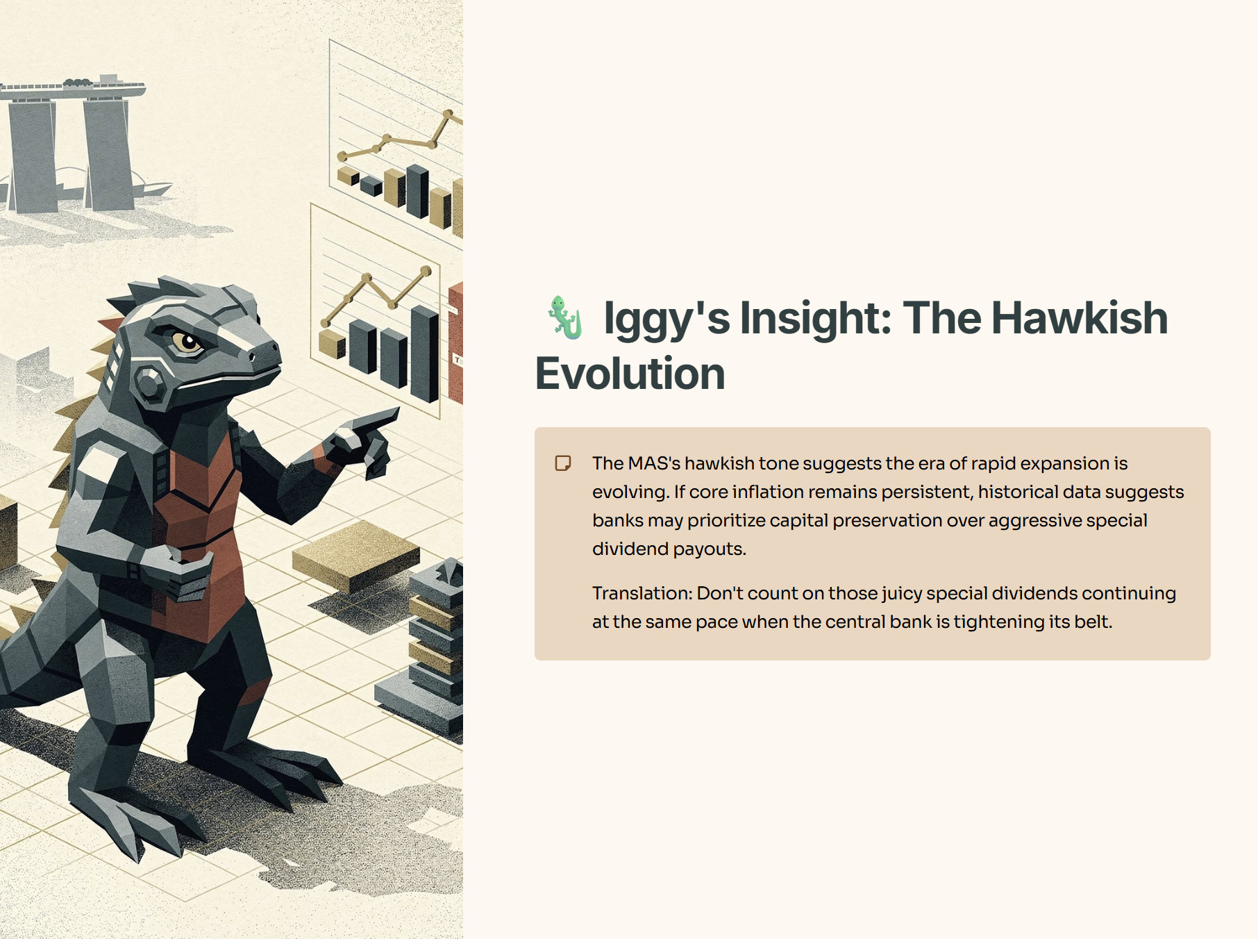 The MAS’s hawkish tone suggests the era of rapid expansion is evolving. If core inflation remains persistent, historical data suggests banks may prioritize capital preservation over aggressive special dividend payouts.