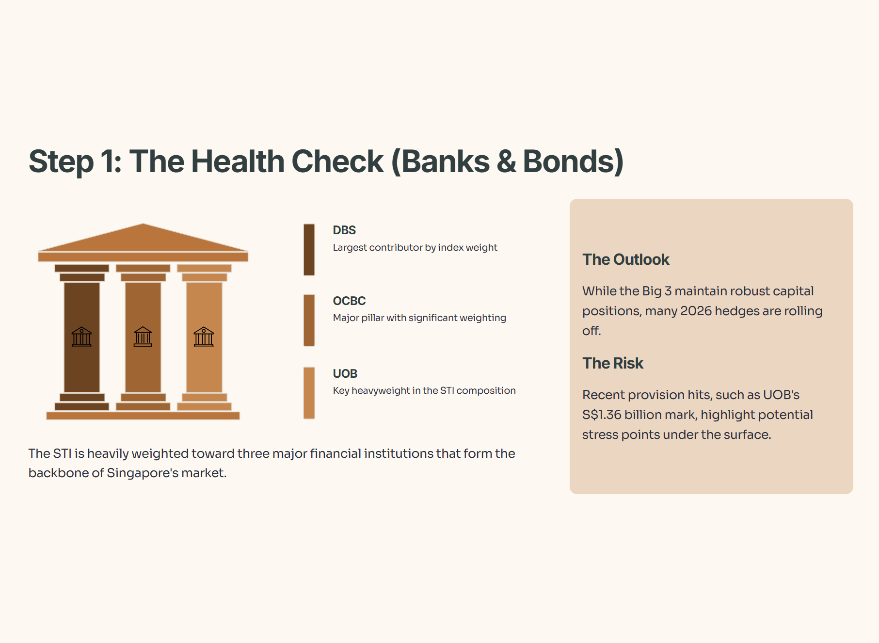The Risk: Recent provision hits, such as UOB’s roughly S$1.36 billion in allowances for credit and other losses reported in 2025, highlight potential stress points under the surface.