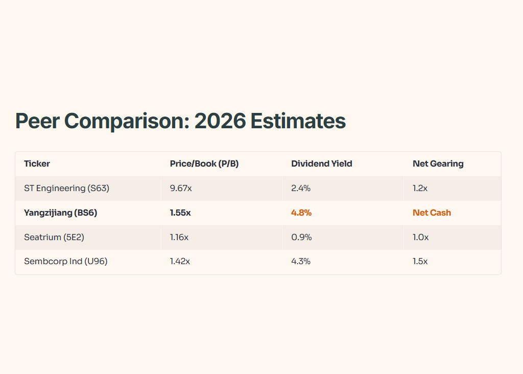 Yangzijiang Shipbuilding (SGX: BS6) is the real value play right now. Trading at S$3.50, it has an **18.4% upside** to its InvestingPro Fair Value of **S$4.14**. With shipbuilding margins reaching a record 35% in 1H2025 and a net cash position of RMB 18.3 billion, it is fundamentally stronger than its peers.