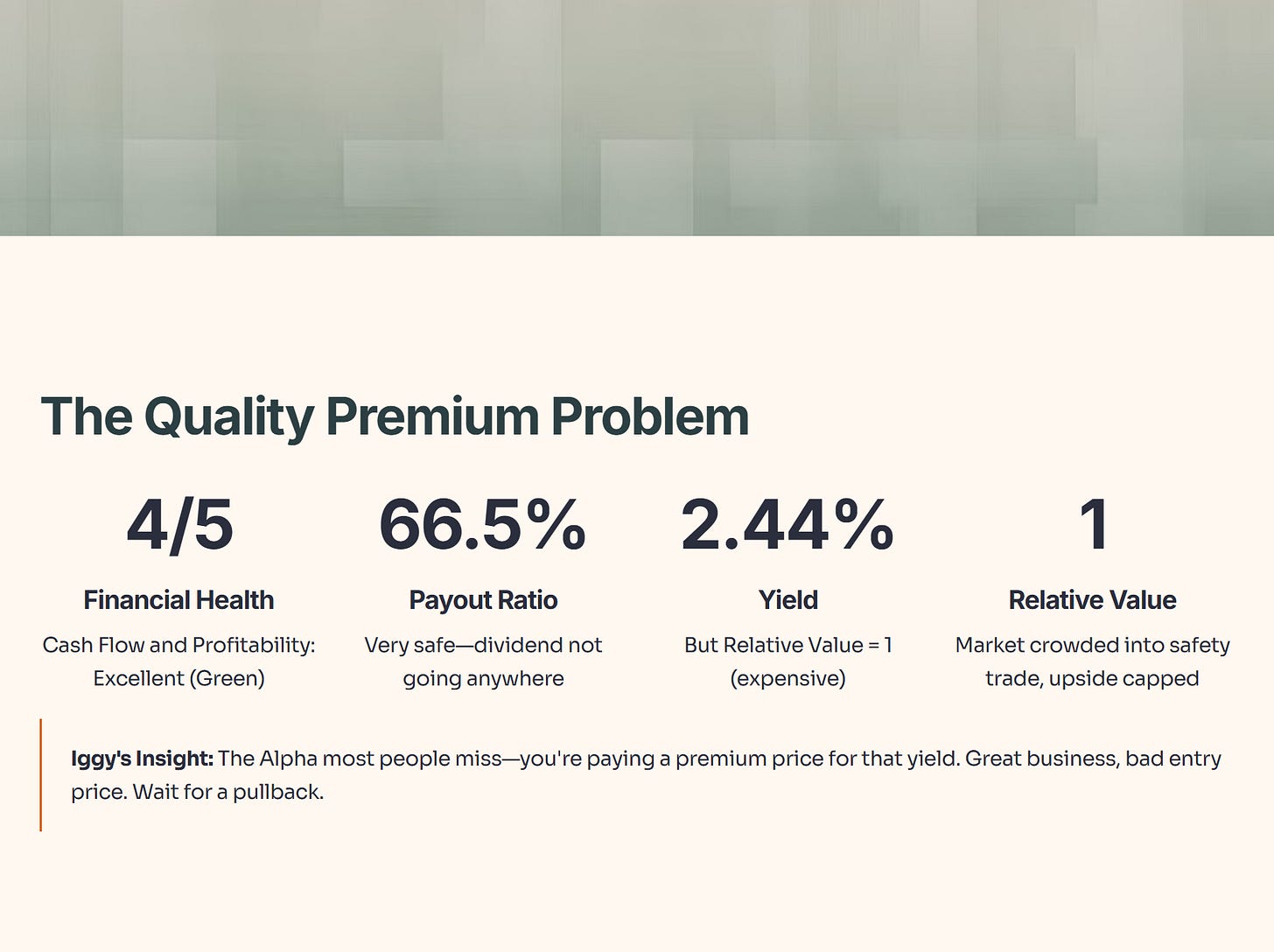 • Iggy’s Insight: The data confirms a classic “quality premium” problem.