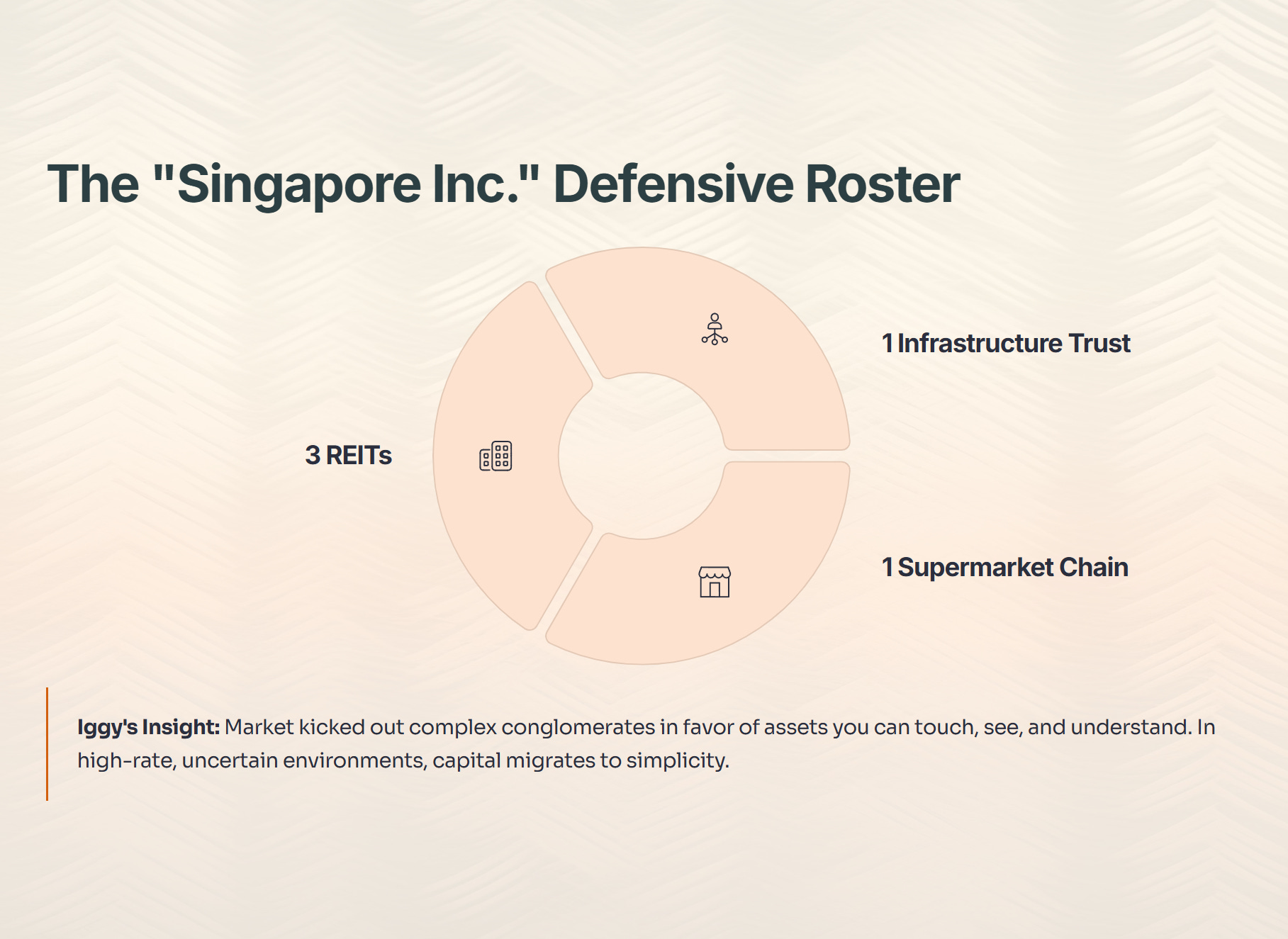 Notice the composition here? Three REITs, one Infrastructure Trust, and one Supermarket chain. This is the “Singapore Inc.” defensive roster. The market effectively kicked out the complex conglomerates (Olam) and opaque financial holdings (Yangzijiang) in favor of assets you can touch, see, and understand. In a high-rate, uncertain environment, capital migrates to simplicity.