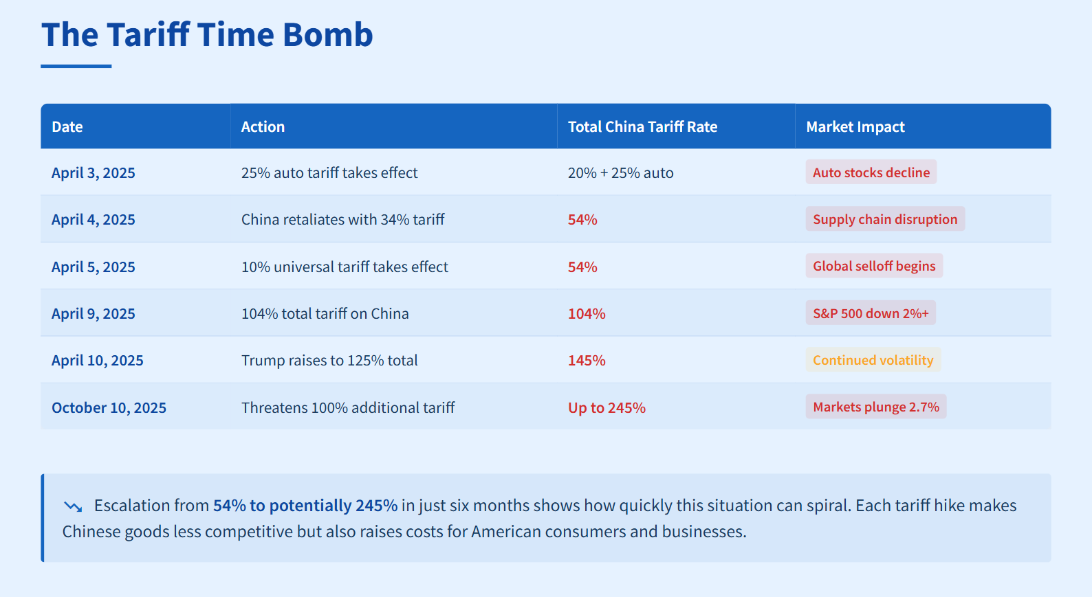 Trump’s escalation follows a clear pattern, but this round feels different. The tariff increases have been rapid and severe.