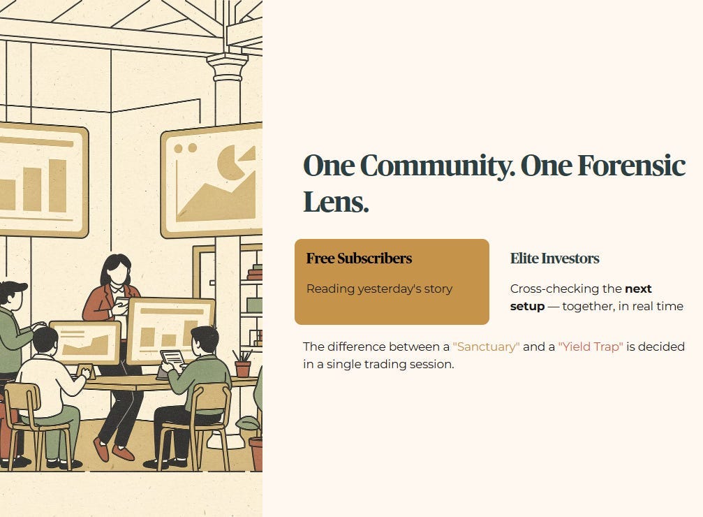One Community. One Forensic Lens. In this market, the difference between a âSanctuaryâ and a âYield Trapâ is decided in a single trading session. While free subscribers are reading yesterdayâs story, Iggyâs Elite Investors are already cross-checking the next setup â together, in real time.