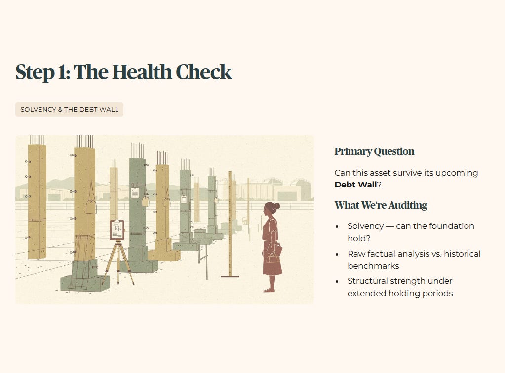 The primary question for any asset in this interest rate environment is whether it can survive its upcoming Debt Wall. We are auditing for solvency, checking if the underlying foundation can withstand the weight of extended holding periods. We apply raw factual analysis and historical benchmarks to determine the strength of the structural frame.