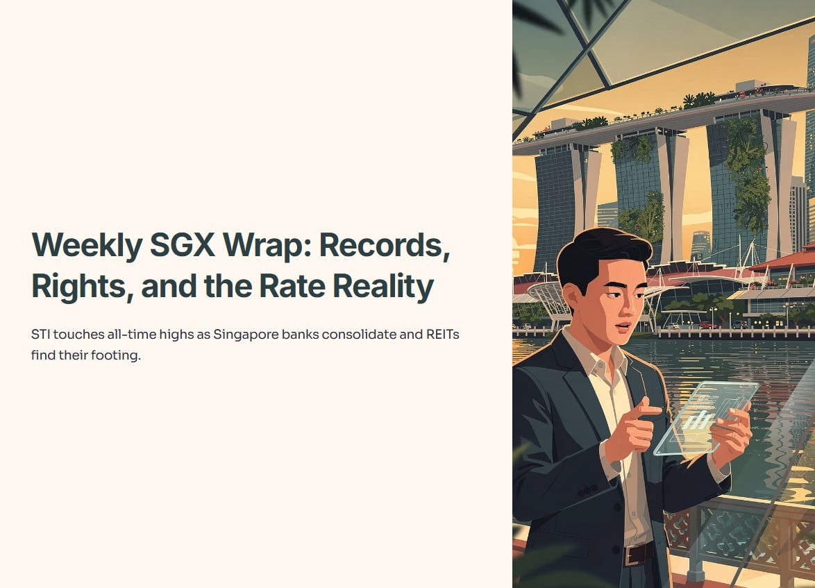 ☕ The Daily PulseWhy "High Yield" REITs are Falling (The 4.26% Gravity Rule) | Weekly Movers The STI touches all-time highs as Singapore banks consolidate and REITs find their footing.The Investing IguanaJan 30, 2026∙ Paid31Share🟡 The Weekend IntroAloha from Kihei, Inner Circle. 🌺Iggy here. I’m writing this from the lanai, watching the Pacific, but even from here, the price action on the SGX was impossible to ignore.Continue reading this post for free, courtesy of The Investing Iguana.Claim my free postOr purchase a paid subscription.PreviousNext