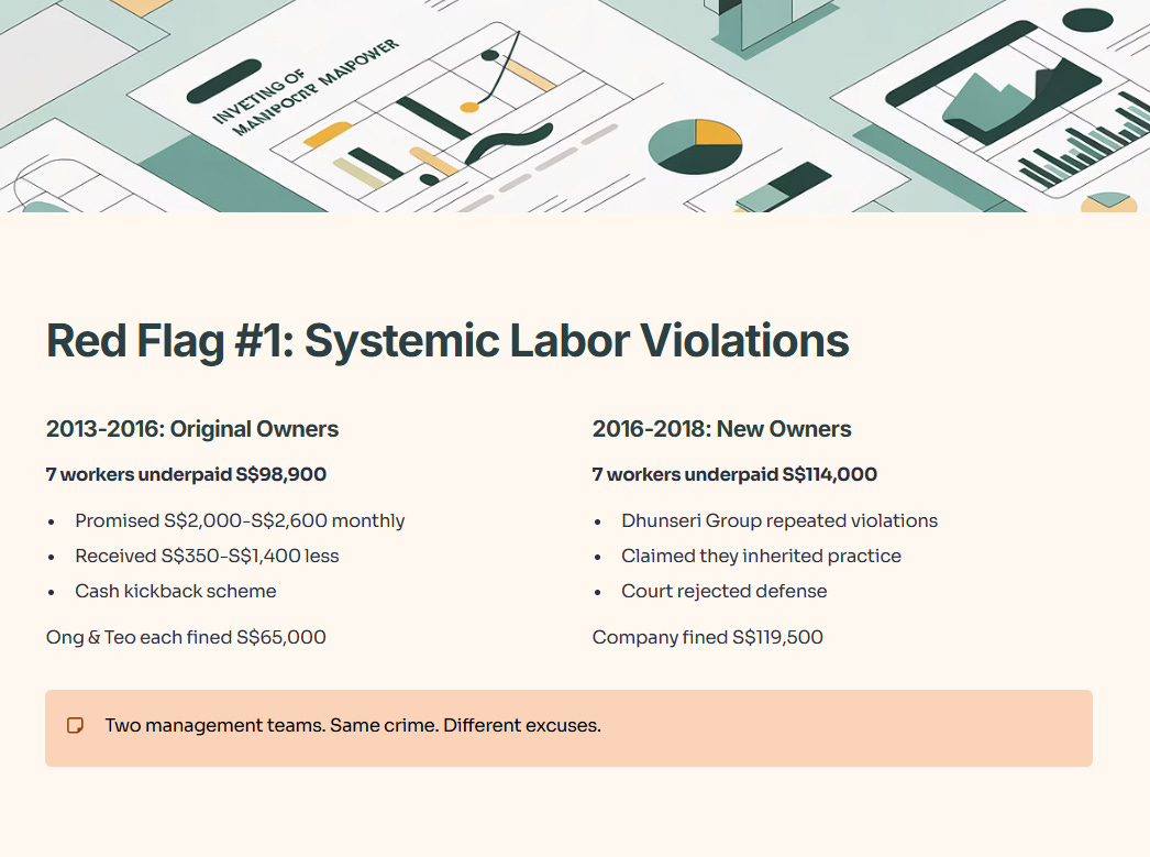• Red Flag #1: Systemic Labor Violations Spanning Multiple Management Teams