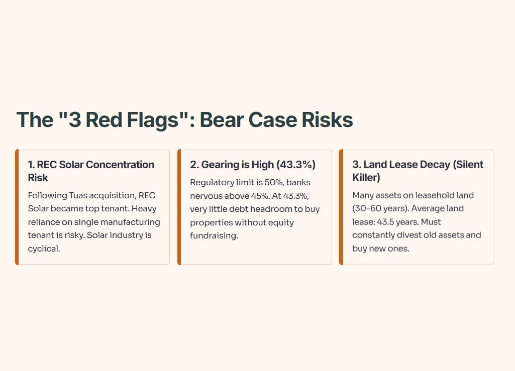Following the Tuas acquisition, REC Solar has become a top tenant. While they have bank guarantees, relying heavily on a single tenant in the manufacturing sector is risky. If REC Solar faces industry headwinds (solar is cyclical), ESR-REIT takes a hit.
