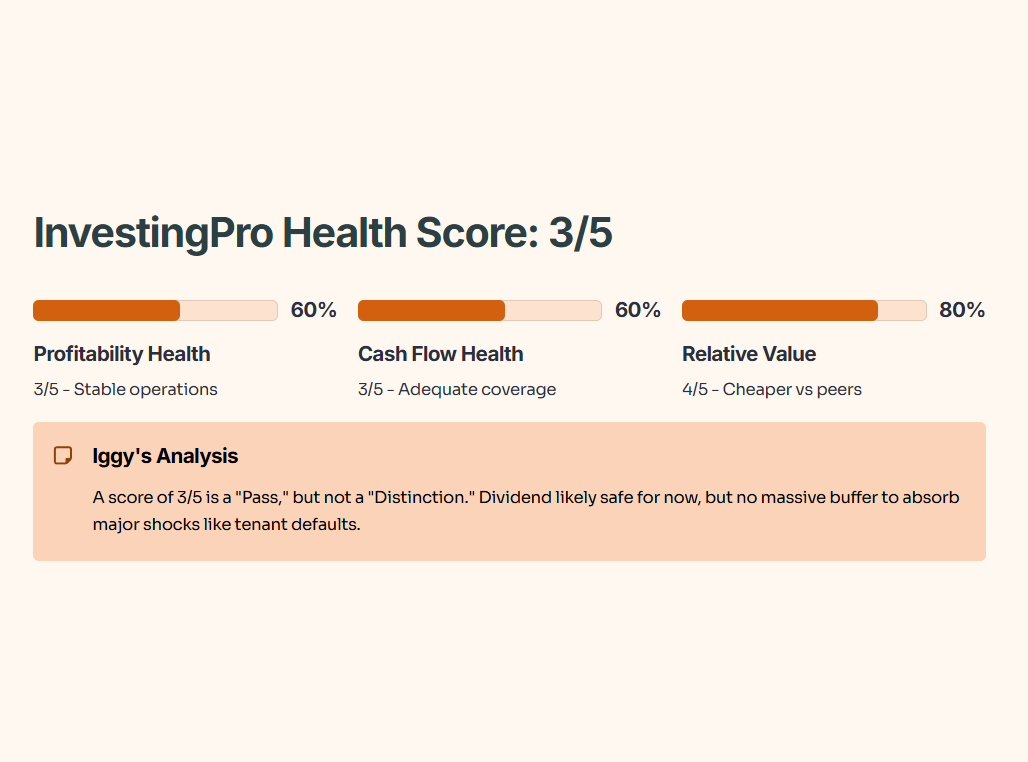 A score of 3/5 is a “Pass,” but not a “Distinction.” It means the dividend is likely safe for now, but the company doesn’t have a massive buffer to absorb a major shock (like a tenant default).