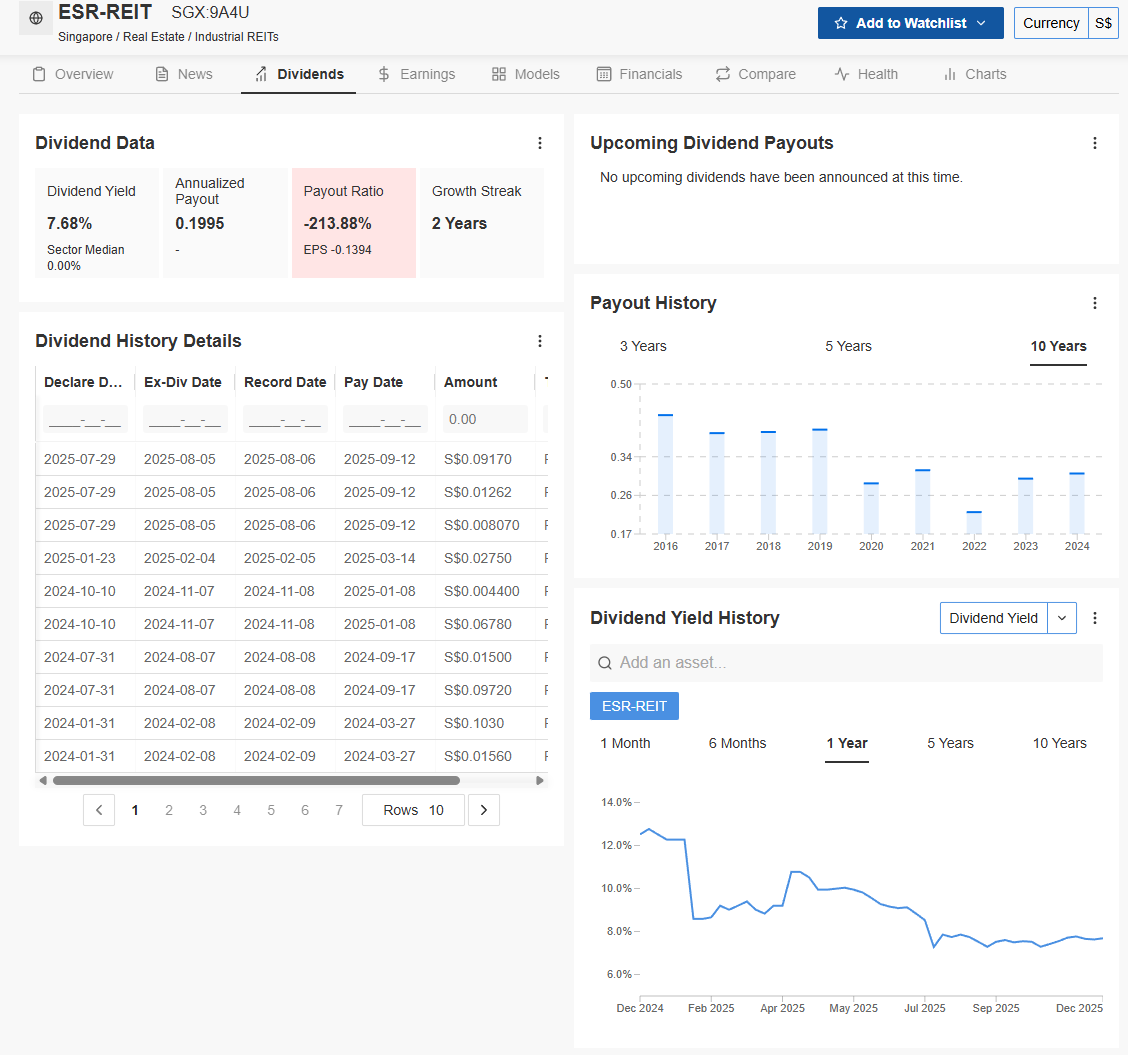 High yield is often a sign of distress. Is ESR-REIT financially healthy enough to sustain this payout?