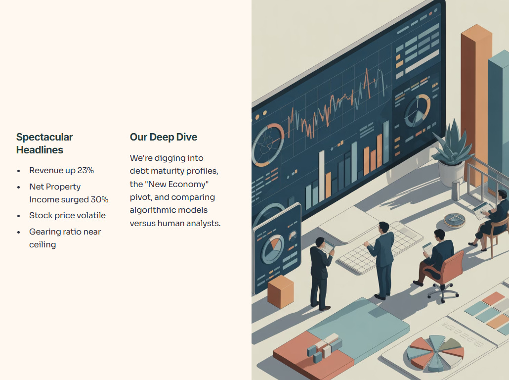 The headline numbers look spectacular: Revenue is up 23%, and Net Property Income (NPI) has surged 30%. Yet, the stock price has been volatile, and the gearing ratio is uncomfortably close to the ceiling.
