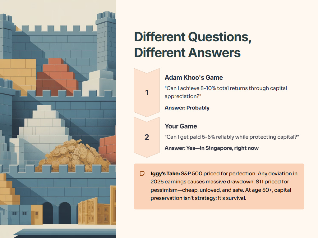 Adam Khoo wants 10% growth. You need 6% reliable cash flow. Here is the mathematical argument for staying home this year.