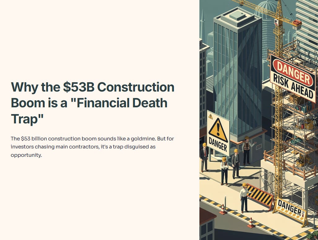 The $53 billion construction boom sounds like a goldmine. But for investors chasing main contractors, it's a trap disguised as opportunity.