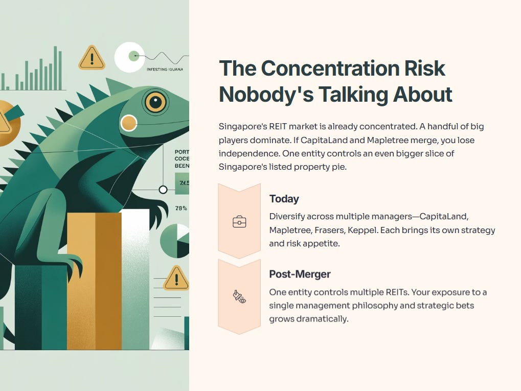 Here’s a hard truth: Singapore’s REIT market is already concentrated. A handful of big players dominate the listing. Fewer independent operators means less choice for investors and more market power concentrated in fewer hands.